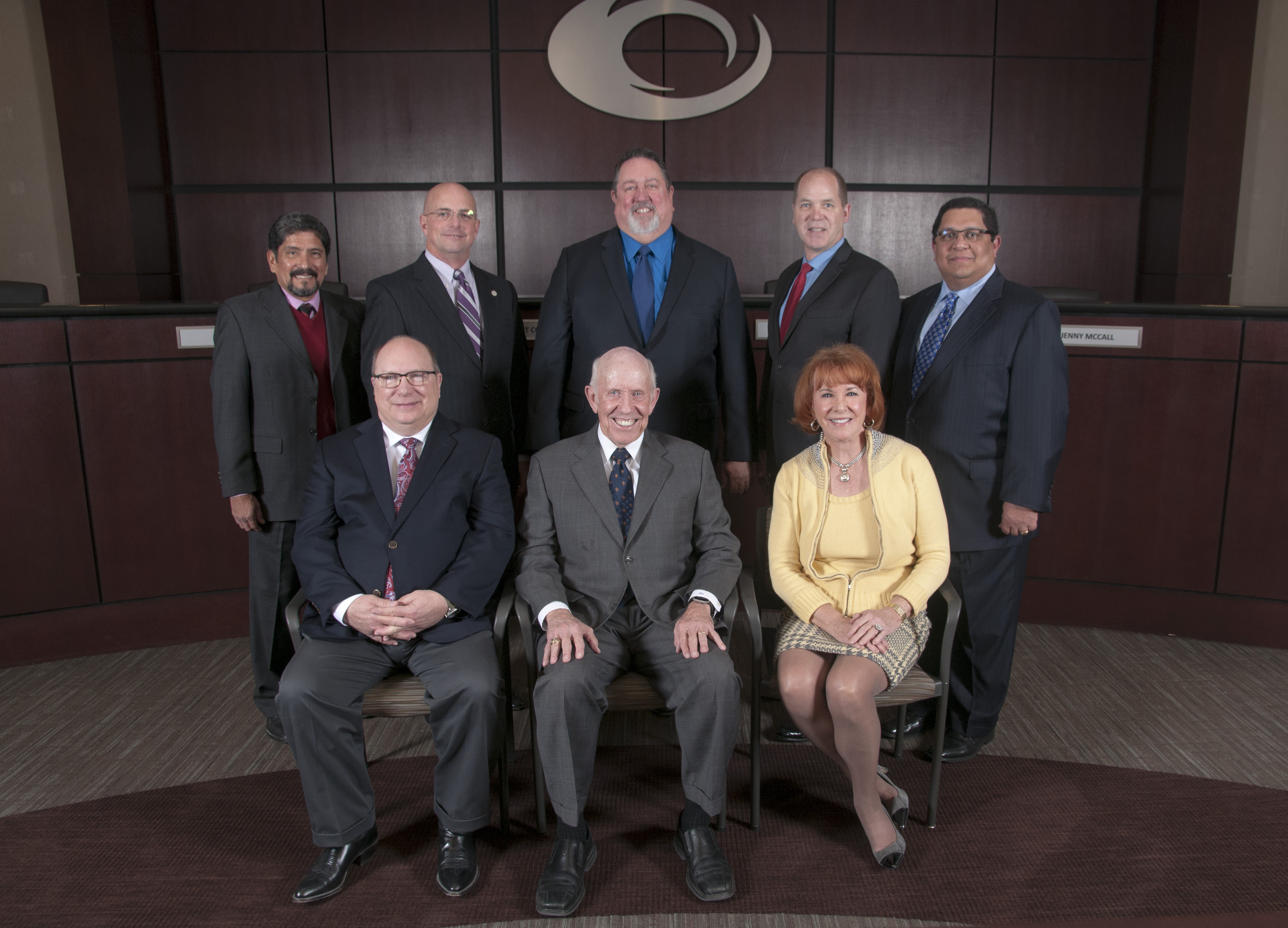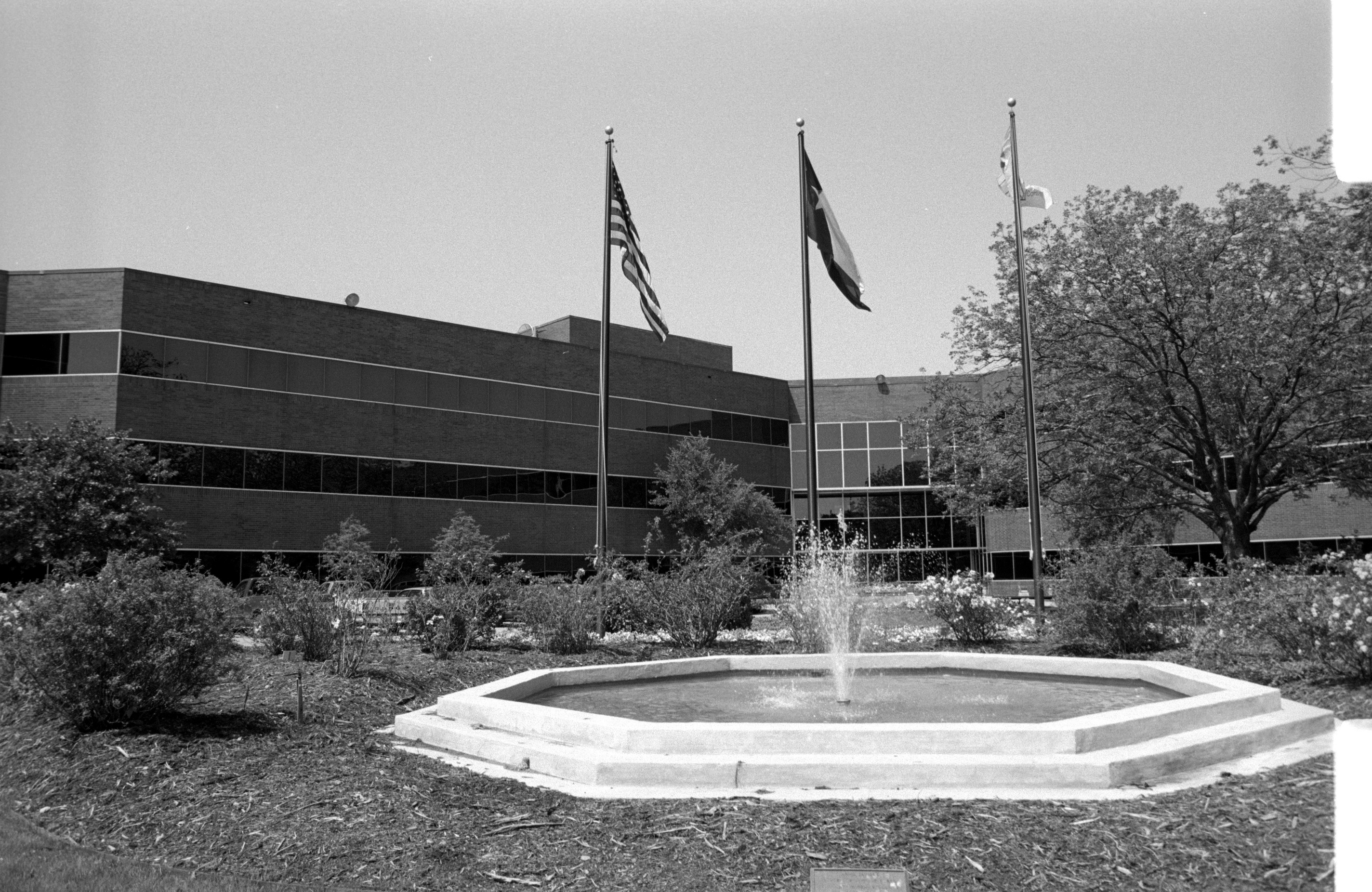 Enter through the main entrance facing Spring Creek Parkway, marked by the three flagpoles