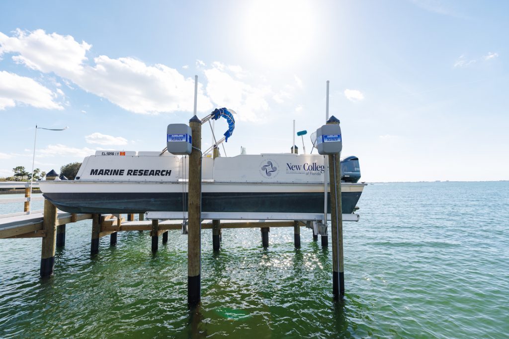 凯普斯校区新建的海洋研究和滨水娱乐码头提供了从校园到萨拉索塔湾的便捷通道。 供教师和学生研究人员使用的研究船包括R/V Limbatus (26 ' Beachcat玻璃纤维浮筒船),R/V Pagurus (12 ' Skeeter铝制小船)和14 ' Rigid充气船。