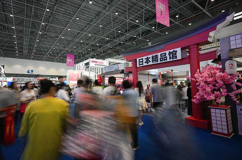 4月17日,第五届消博会全球特色消费展区人流如织。