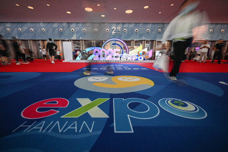 4月18日在第五届消博会主会场拍摄的消博会吉祥物。