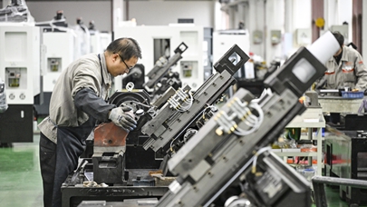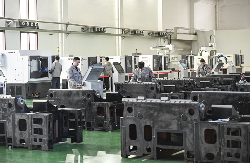 2月22日,工人在重庆宏钢数控机床有限公司总装车间作业。