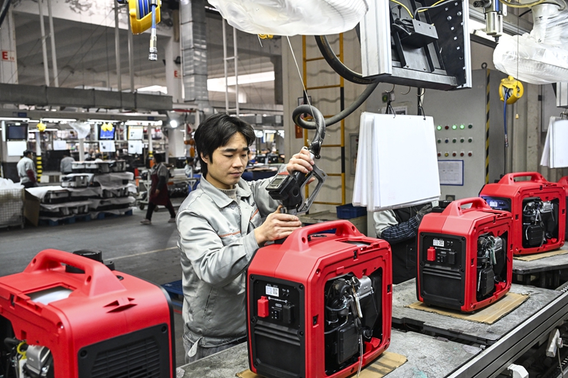 2月22日,工人在重庆华世丹机械制造有限公司变频发电机生产线上作业。