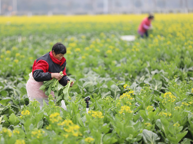 2月24日,菜农在湖南省永州市道县一蔬菜基地采收蔬菜。