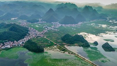 7月15日拍摄的普者黑景区风光(无人机照片)。