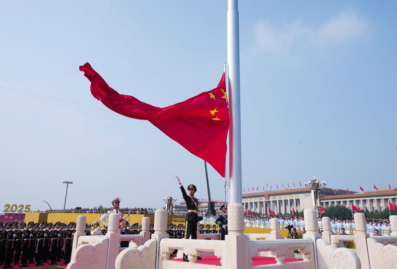 9月3日,纪念中国人民抗日战争暨世界反法西斯战争胜利80周年大会在北京隆重举行。这是天安门广场举行隆重的升国旗仪式。