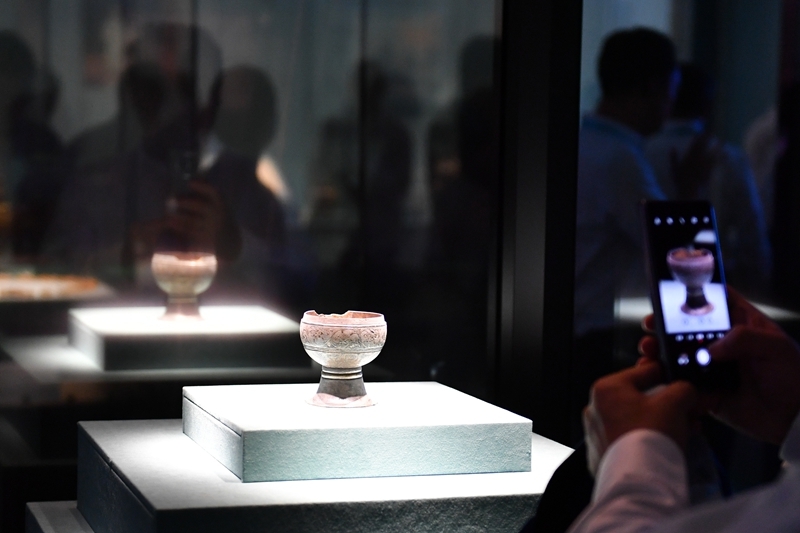 6月14日,观众在长沙博物馆参观“不尽长江滚滚来——长江与中华文明展”。