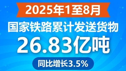 记者9月16日从中国国家铁路集团有限公司获悉,2025年1至8月,国家铁路累计发送货物26.83亿吨,日均装车18.4万车,同比分别增长3.5%、4.3%,铁路物流效率和品质持续提升,为我国经济持续回升向好提供了可靠运输保障。