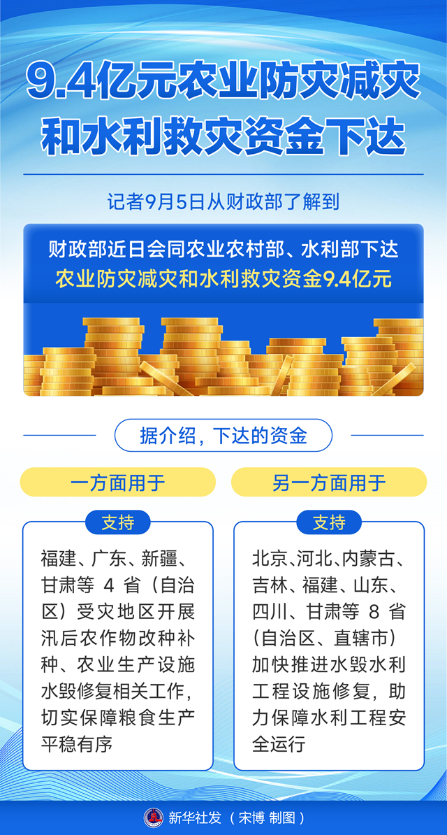 图表:9.4亿元农业防灾减灾和水利救灾资金下达