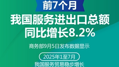 商务部9月5日发布数据显示,2025年1至7月,我国服务贸易稳步增长,服务进出口总额45781.6亿元,同比增长8.2%。