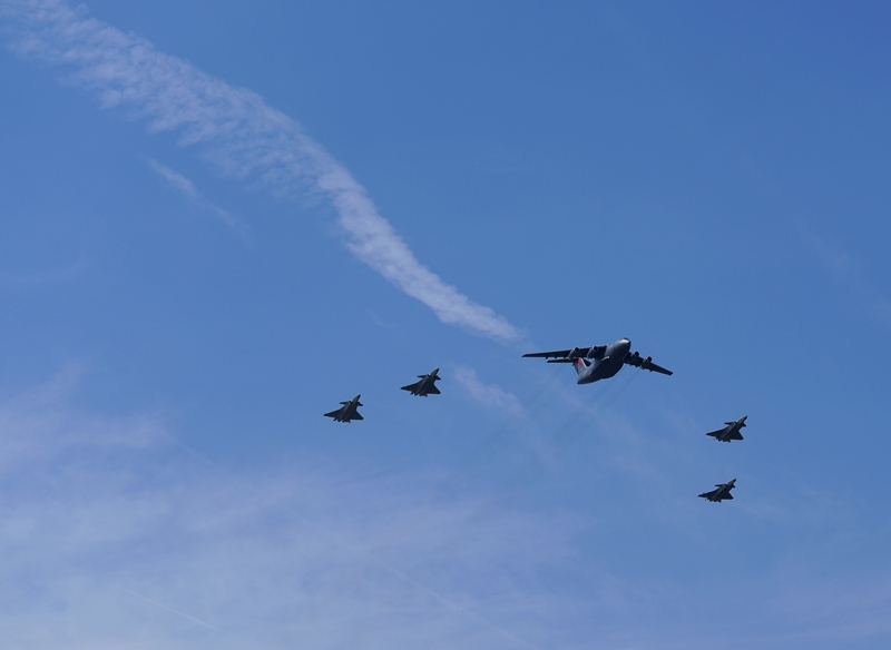 9月12日,第十二批在韩中国人民志愿军烈士遗骸回国。这是为接运烈士遗骸回国的运-20专机伴飞护航的歼-20飞机。