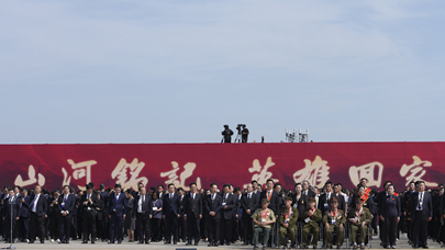 9月12日,第十二批在韩中国人民志愿军烈士遗骸回国。这是在沈阳桃仙国际机场,接运烈士遗骸回国的运-20专机在4架歼-20飞机伴飞护航下即将降落。