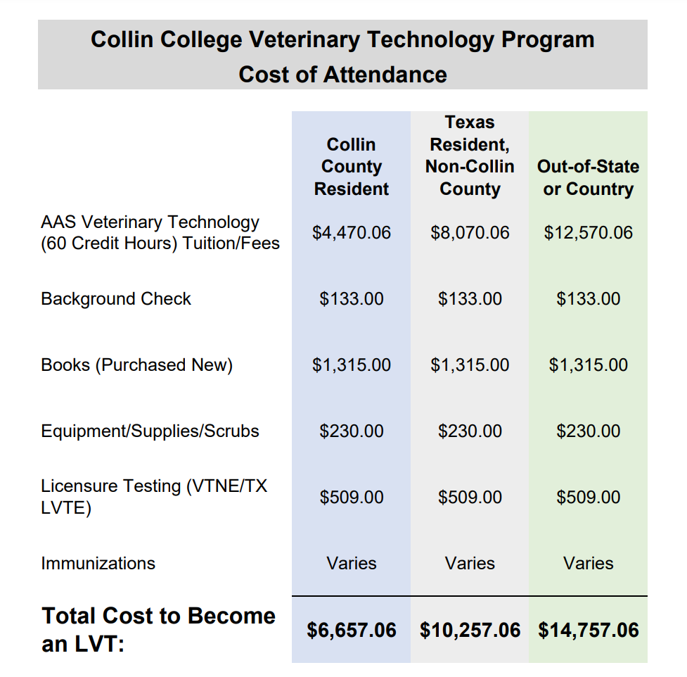 The Collin College Vet Tech program currently has a 88.9% pass rate on the Veterinary Technician National Exam (VTNE) exam.