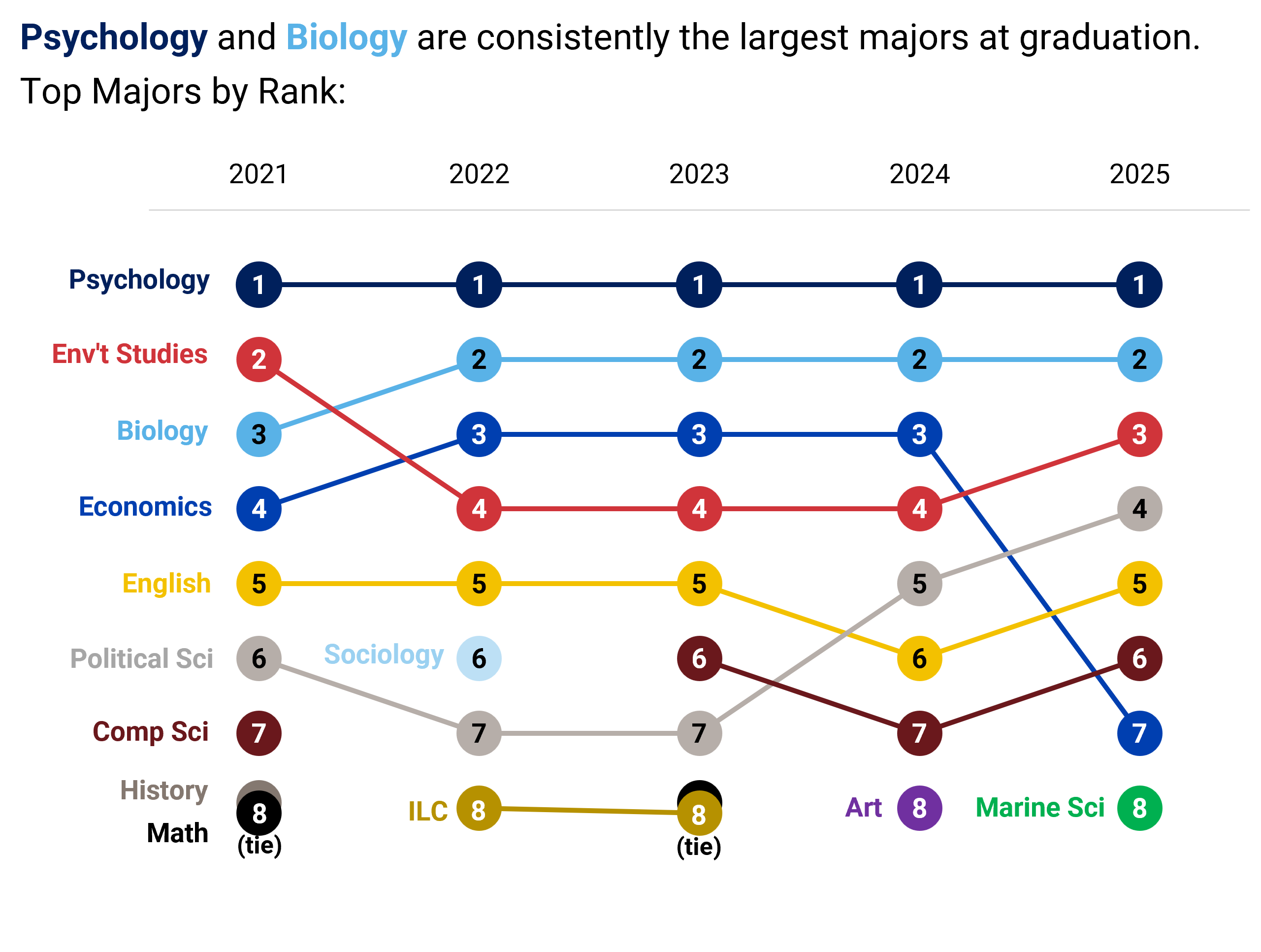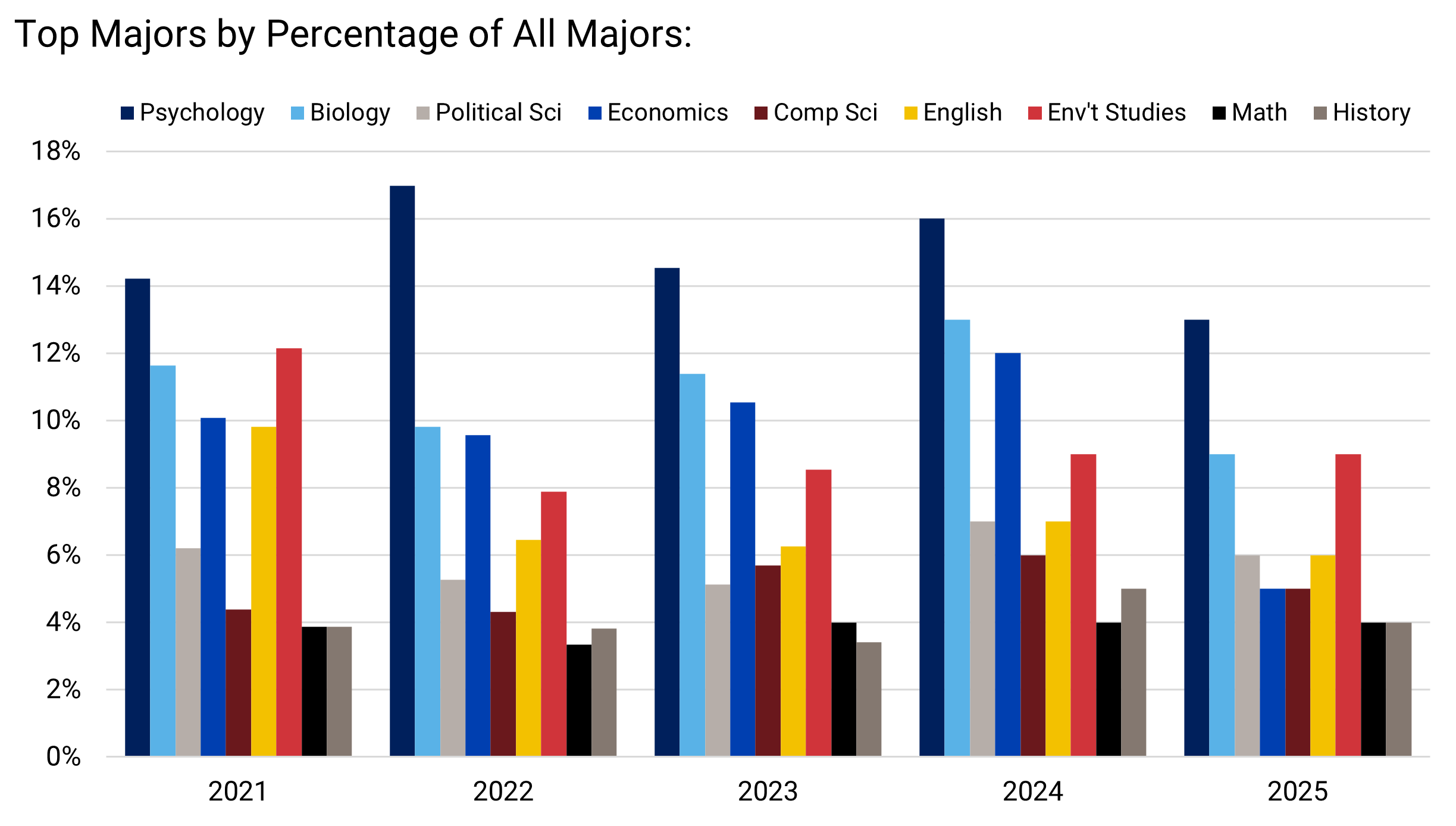 快照:过去五年毕业专业的趋势。